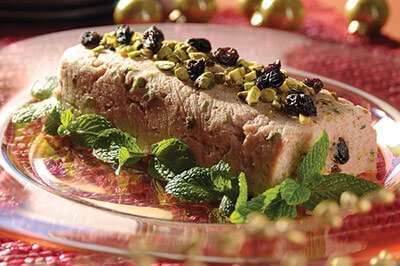 Botana de jamón con pistaches y pasas