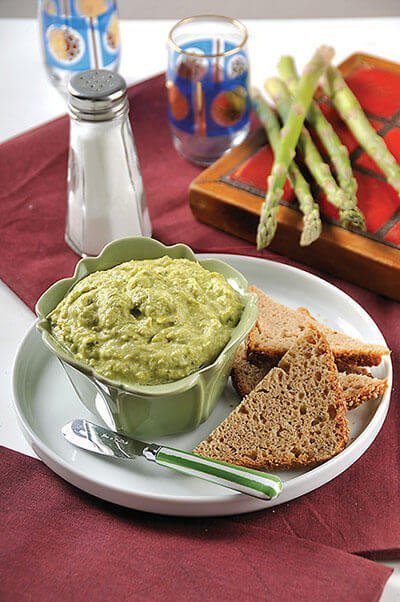 - Coloca los espárragos en una licuadora o procesador de alimentos hasta formar un puré, vacía en un recipiente y mantén en reserva. Añade en el mismo procesador el queso crema, la ralladura de limón, la crema, la mantequilla y la mostaza hasta formar una mezcla homogénea. Incorpora poco a poco el puré de espárragos hasta añadir toda la mezcla. Rectifica la sazón y refrigera durante la noche.