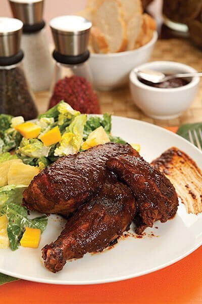 - Derrite la manteca en un recipiente a fuego bajo y agrega el pollo previamente sazonado con la sal. Fríe el pollo y deja que dore (baja el fuego). Incorpora la salsa, deja a fuego lento y mueve constantemente durante 35 minutos hasta que el pollo esté suave y absorba la salsa. Añade eltequila y deja cocinar por 20 minutos más para que el alcohol se evapore. Acompaña con una fresca y deliciosa ensalada de mango y piña.