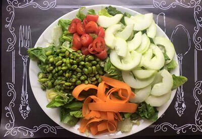 Receta práctica para una ensalada delechuga, zanahoria, pepino y frijo de soya. Delicosa y muy nutritiva.