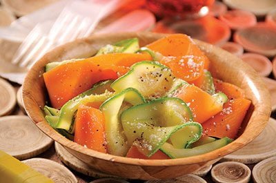 - Rebanar las calabazas y las zanahorias finamente; blanquear y refrescar inmediatamente.