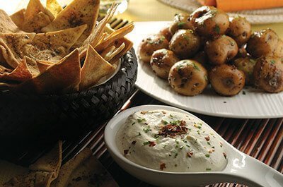 Papitas, chips de pan Árabe con dip de jocoque