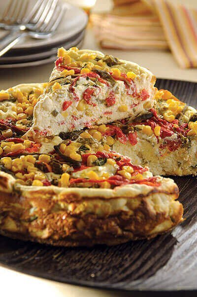 La mezcla de requesón con rajas y granos de elote hacen de este pay una receta inigualable.