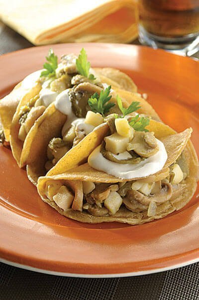 - Rellenar con la mezcla reservada de poblano con champiñones y papas.