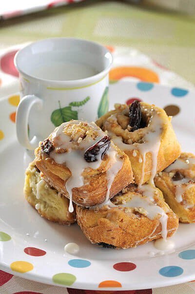 - Para el glas mezclar todos losingredientes hasta lograr una mezclaespesa y vertersobre los rollos.
