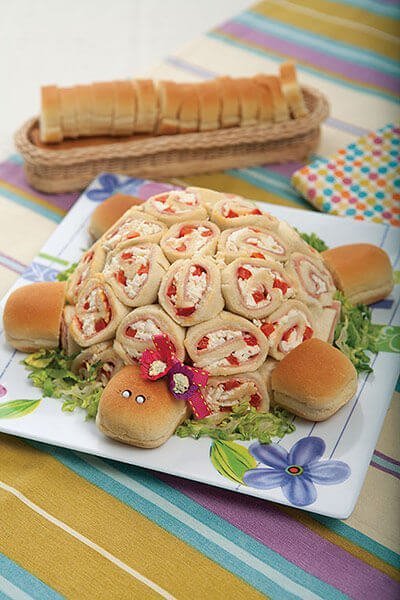 - Elimina las orillas o cortezas del pan y aplánalas sobre el papel aluminio. Unta el pan de mayonesa, acomoda las rebanadas de jamón, queso, huevo y pimiento morrón. Enrolla la preparación con la ayuda del papel aluminio y corta el rollo en rodajas. Unta de mayonesa cada rodaja de pan.